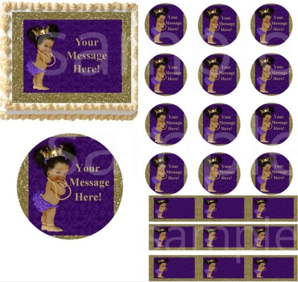 Purple And Gold Afro Puffs Baby Gold Shoes Edible Cake Topper Image Cupcakes